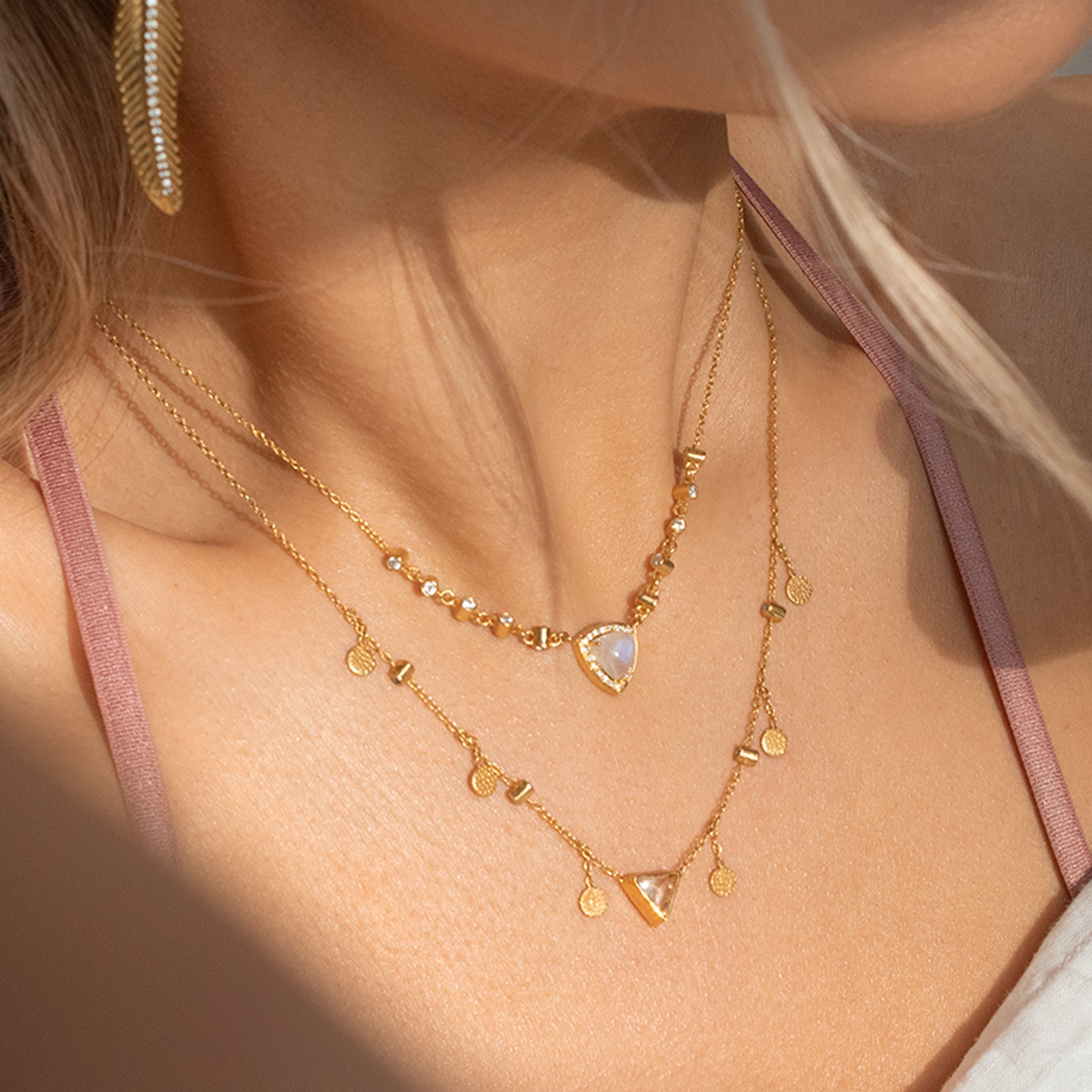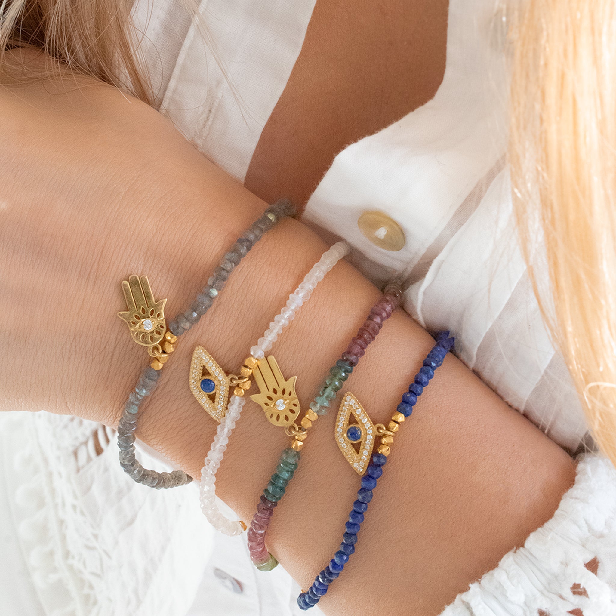 Inspired by the Southern Californian Desert, the Charmed collection uses specially selected gemstones, mixing glamour with the healing properties and energy of crystals. A collection made for stacking!