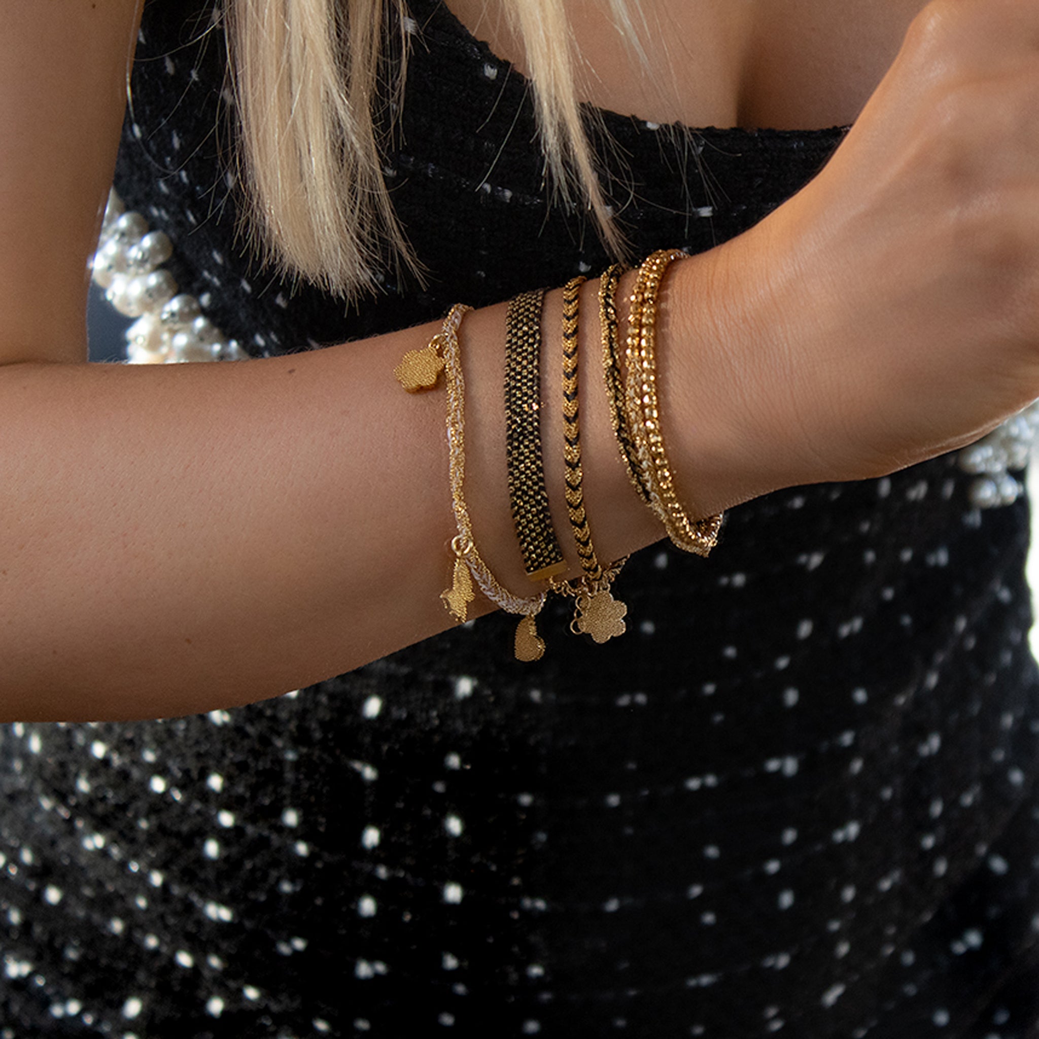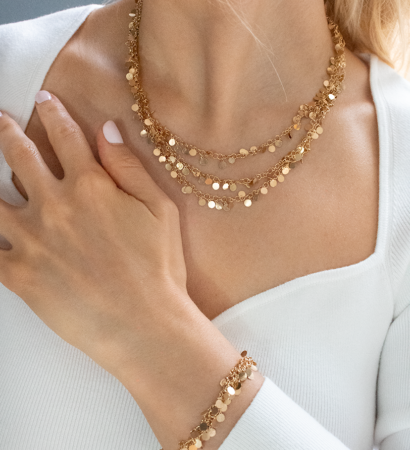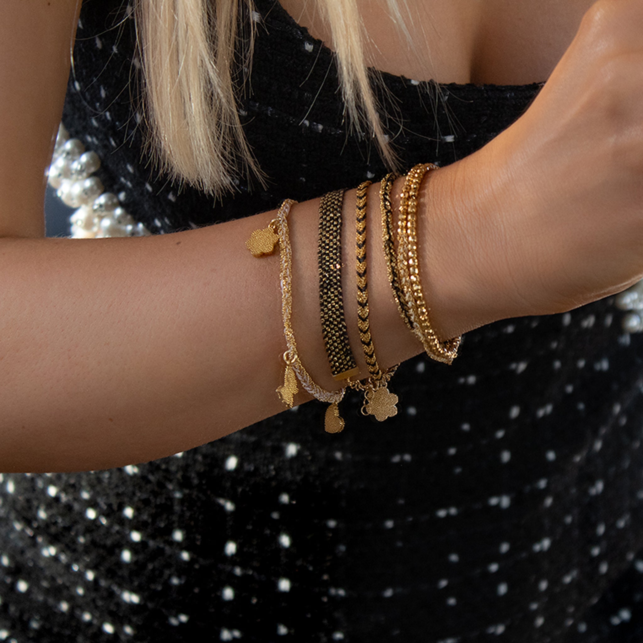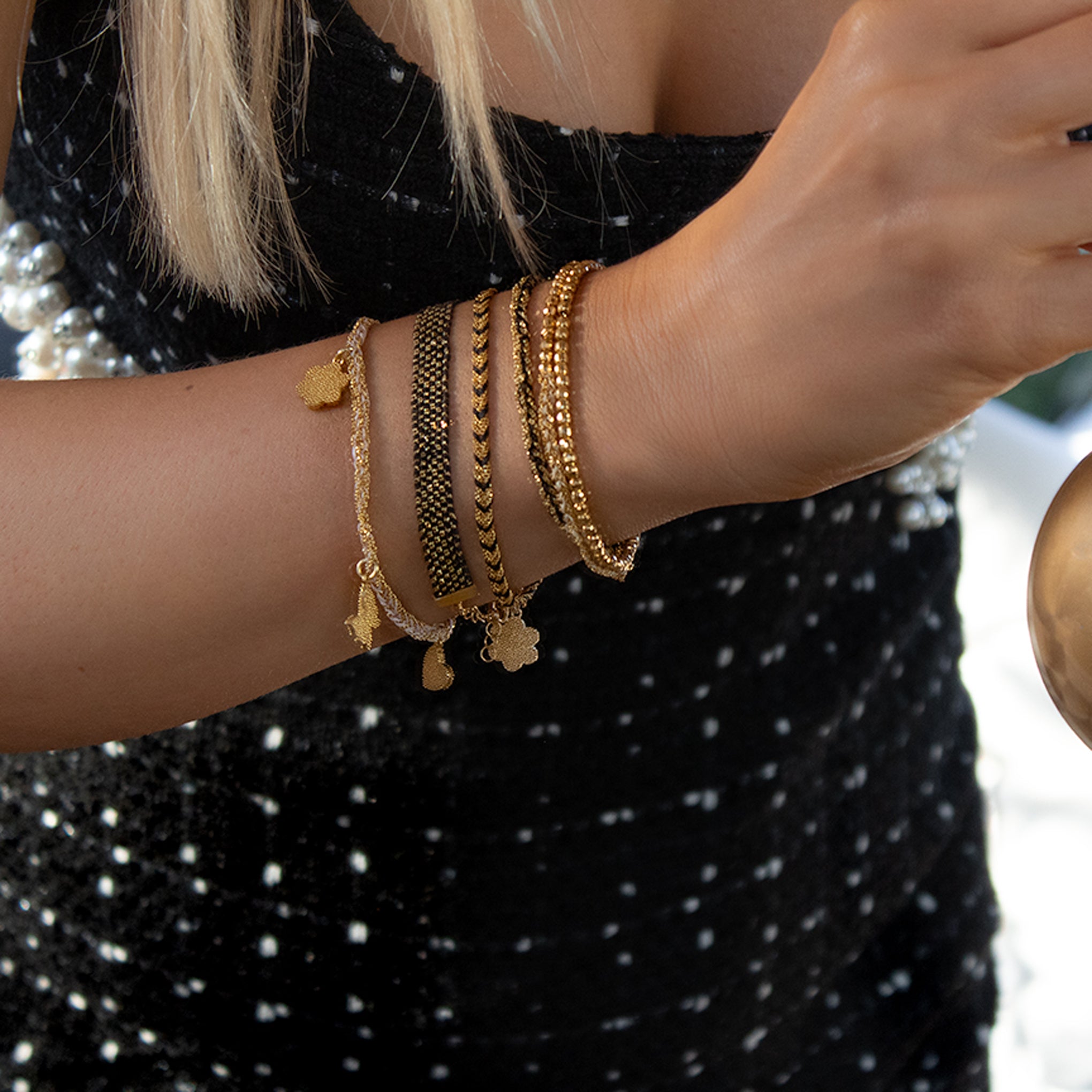 A sparkling collection in our signature Champagne gold, the perfect accessory to any outfit!