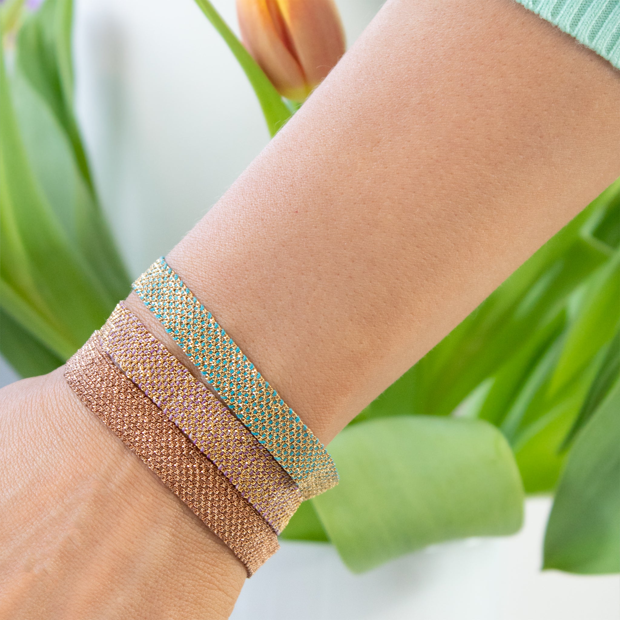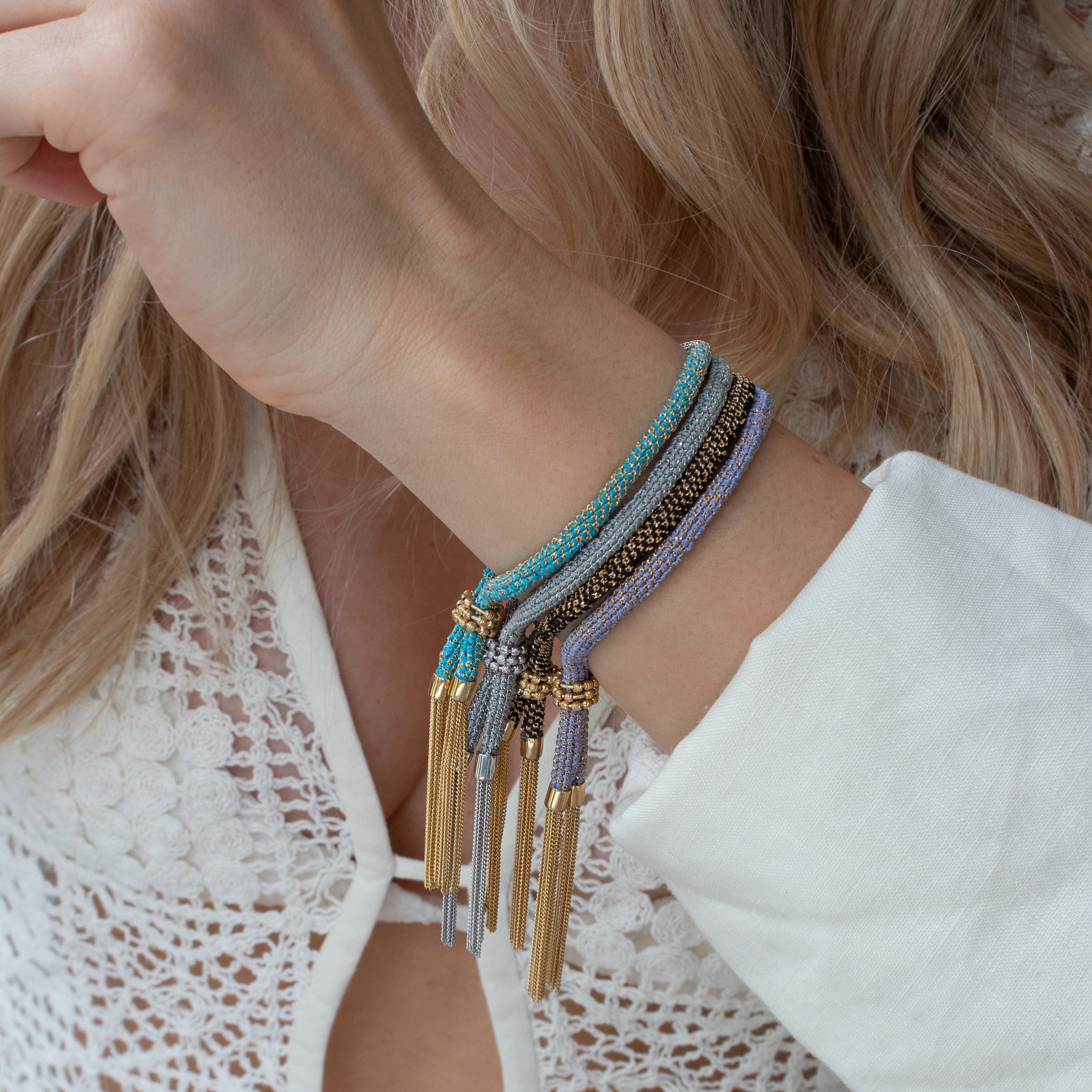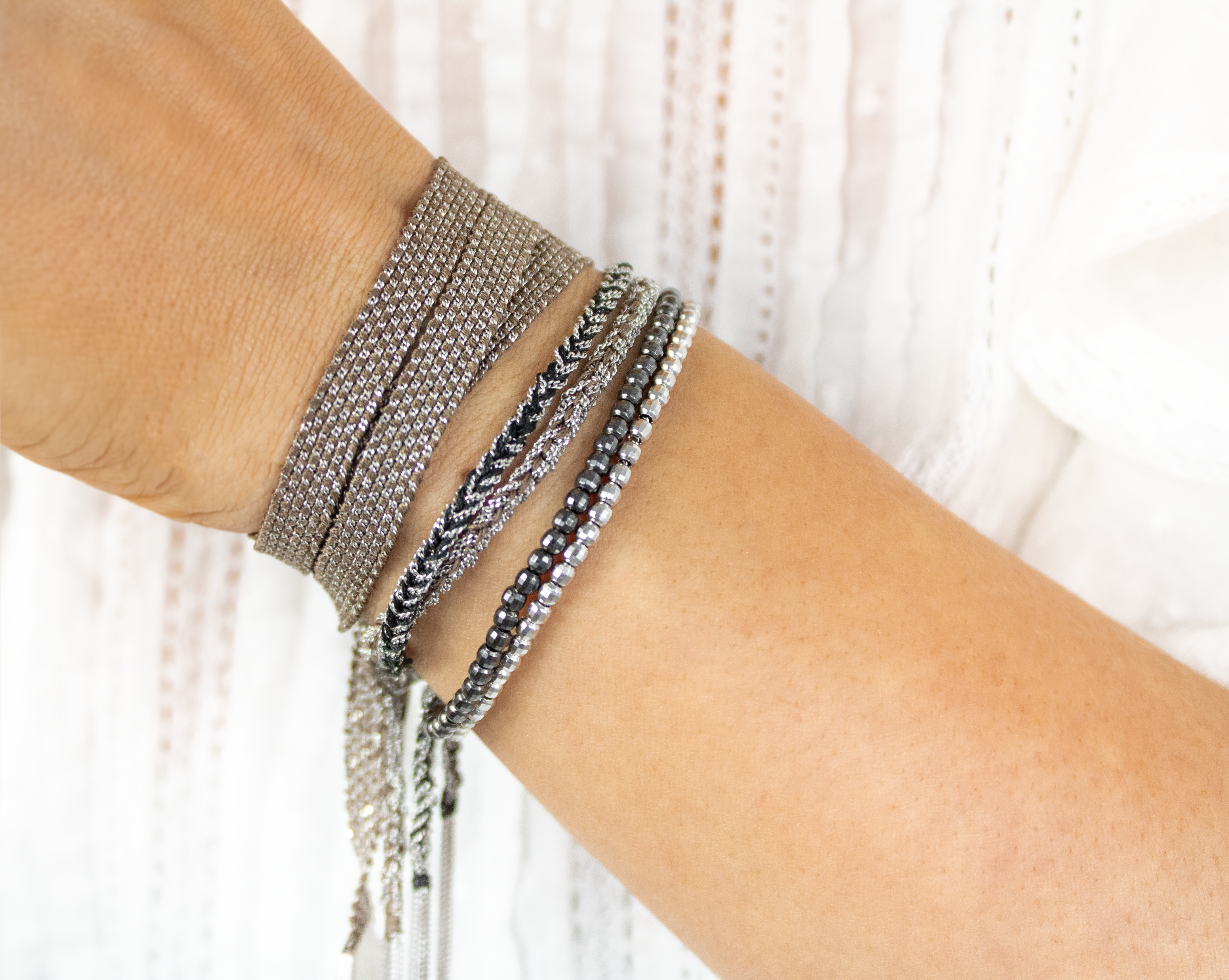 New for 2023, the gorgeous Ibiza Tie Bracelet features our classic tight weave finished with braided ties ending with a fun tassel. It gives off a beautiful sparkle when catching the light.