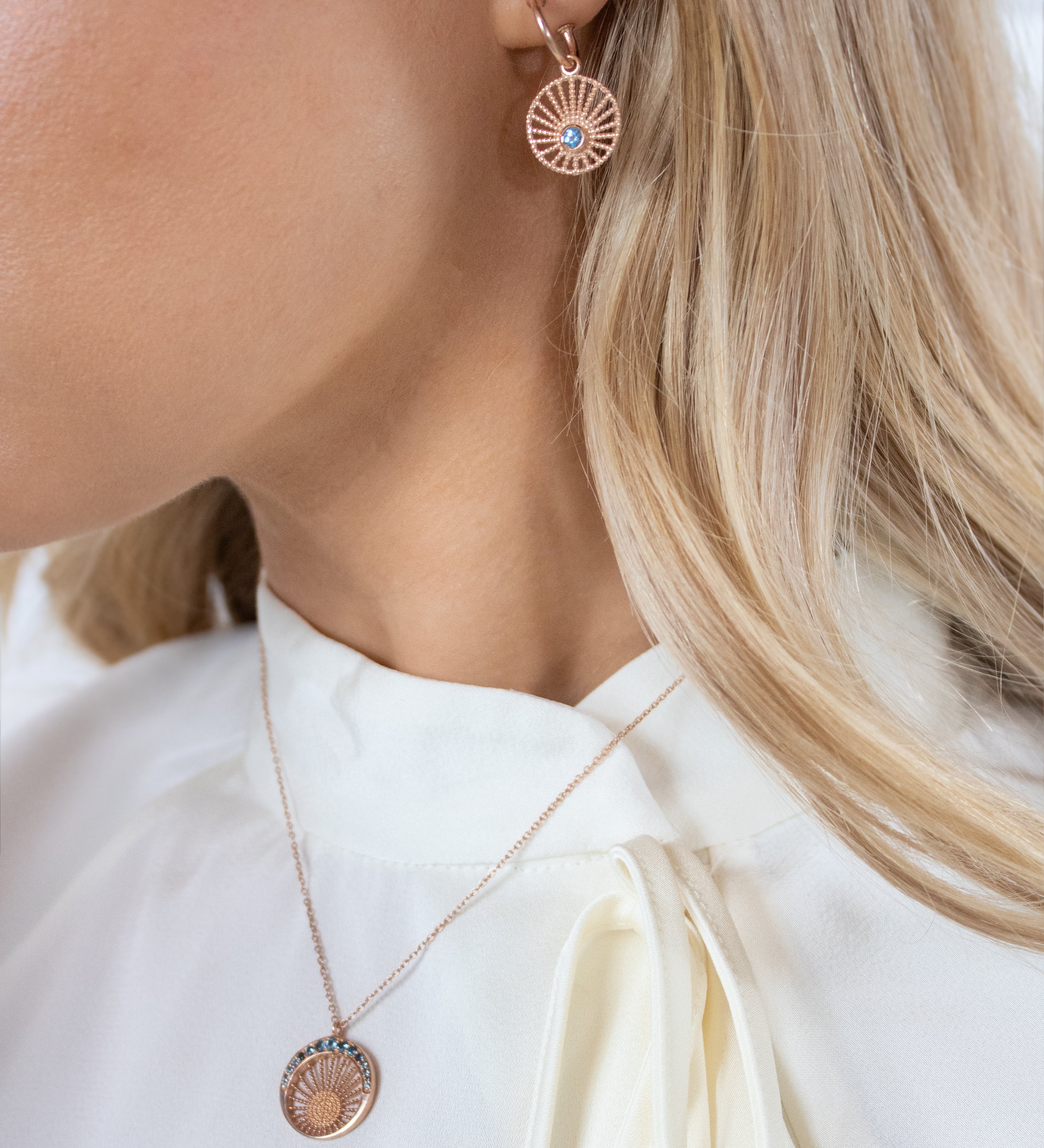 As seen in NETFLIX's Buying London, the COSMOS collection is inspired by the beauty and mystery of the universe and its connection to the earth. The collection made in 18ct gold and rose gold vermeil blends Moon and Star motifs with meaningful rose quartz, clear quartz, and labradorite crystals enhancing their healing and spiritual properties, to promote love, clarity, and balance. These elements come together to create pieces that not only look beautiful, but also serve as a personal talisman, connecting the wearer to the universe and their inner self. It features necklaces perfect for layering, long and short earrings, and elegant hand bracelets!