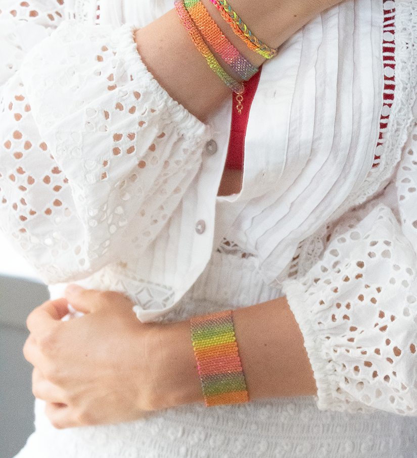 This colourful and elegant collection, inspired by the 1920s, is created using an old Italian weaving technique. Featuring hand-braided Italian silk woven with 18ct gold vermeil or sterling silver, each piece in the Silk Weaved Collection blends vibrant colours with timeless craftsmanship. From signature wrap bracelets and woven rings to bold cuff styles, these pieces bring a modern twist to vintage-inspired designs, perfect for layering, gifting, or wearing on their own.