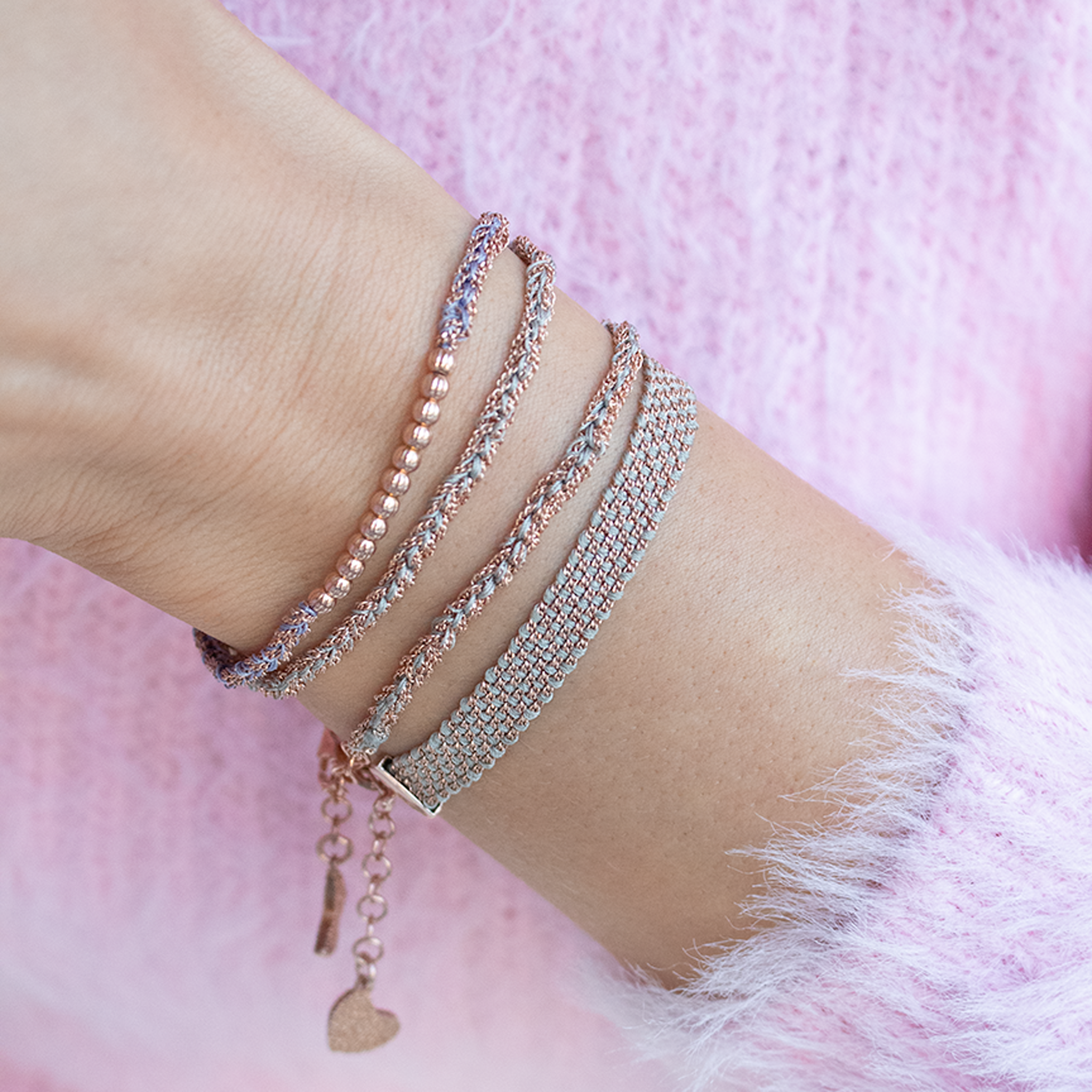 This fun and colourful friendship bracelet is made with 18ct Gold Vermeil chain weaved with Turquoise Silk and features a pretty gold charm at the end. Adjustable in length, it makes the perfect gift and can easily be stacked with any bracelet.