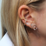 This super cute ear cuff is the ultimate ear candy and doesn't require a piercing! It is suitable for anyone to wear as its looser than the usual ear cuffs so it naturally sits on your ear. And it features a fastening at the back which you can open and close to wear it comfortably. Wear it with the Eclipse Lucky earrings or Eclipse Studs for a unique look! It comes as a single piece and you can wear it on either ear.