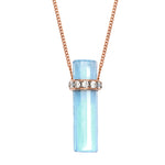 A one of a kind Gem pendant featuring a stunning barrel shaped Blue Topaz set in an 18ct gold plated case with a white Diamond Pave and an 18ct gold plated chain. The ultimate cocktail necklace!