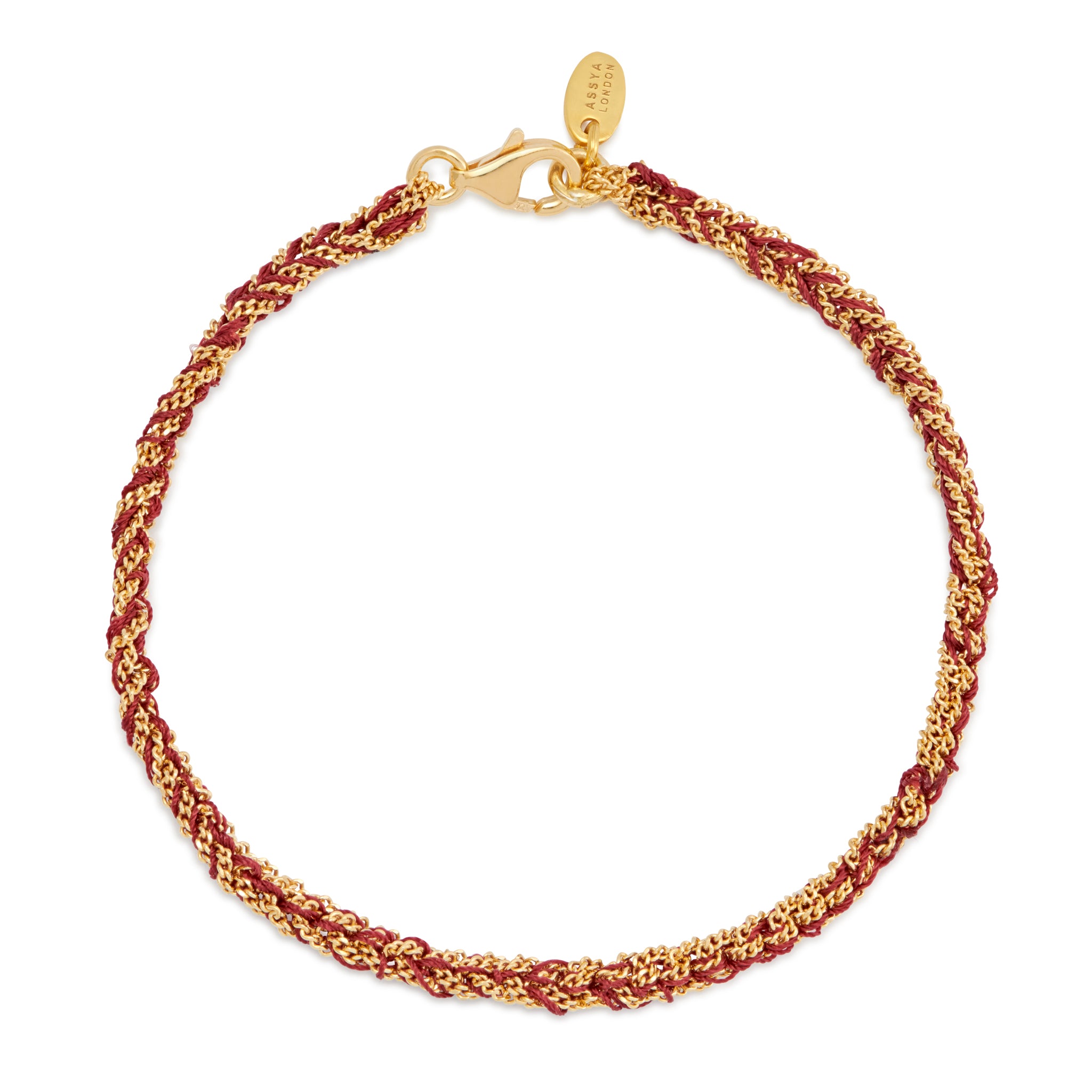 ASSYA's Panama friendship bracelet is colourful, fun and makes a great gift. Inspired by the woven fabrics in Central America, it is hand woven on an Italian loom using a unique Florentine technique. It is braided from Burgundy Natural Silk thread and Gold Vermeil chain. It has a lobster clasp closure. Wear it elegantly on its own or layer it together with other ASSYA bracelets.