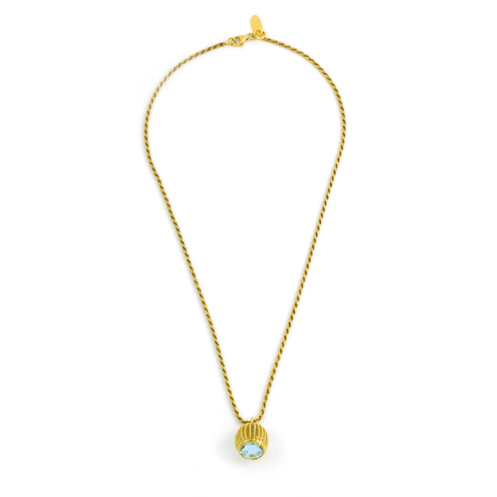 An ASSYA bestseller, this beautiful pendant features a beautiful natural Gemstone set in an 18ct gold vermeil cage on a 45cm long classic Italian Rope chain with a clasp at the end.