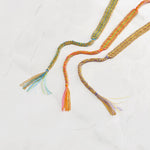 The gorgeous Ibiza Tie Bracelet features our classic tight weave finished with braided ties ending with a fun tassel. Intricately weaved with gold plated silver chain and colourful Lilac coloured silk thread, it gives off a beautiful sparkle when catching the light. Easily ties in a double knot.