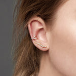 This beautiful ear cuff design in Black Rhodium with White Zircons is inspired by the oriental lotus flower. It's the perfect accessory to any ear and you won't need a piercing! You simply slip it over on the side of your ear. Wear it with your favourite earrings or on its own. Once you put it on you won't want to take it off. Comes as a single piece and is available in different colours.