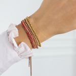 ASSYA's Panama bracelet is a colourful and fun version of a friendship bracelet. Inspired by the woven fabrics in Central America, it is handwoven on an Italian loom using a unique technique. It is braided from Pink Silk and Gold Vermeil chains. It features a lobster clasp closure Wear it on its own or stack it together with other colours from the collection. They make the perfect gift.