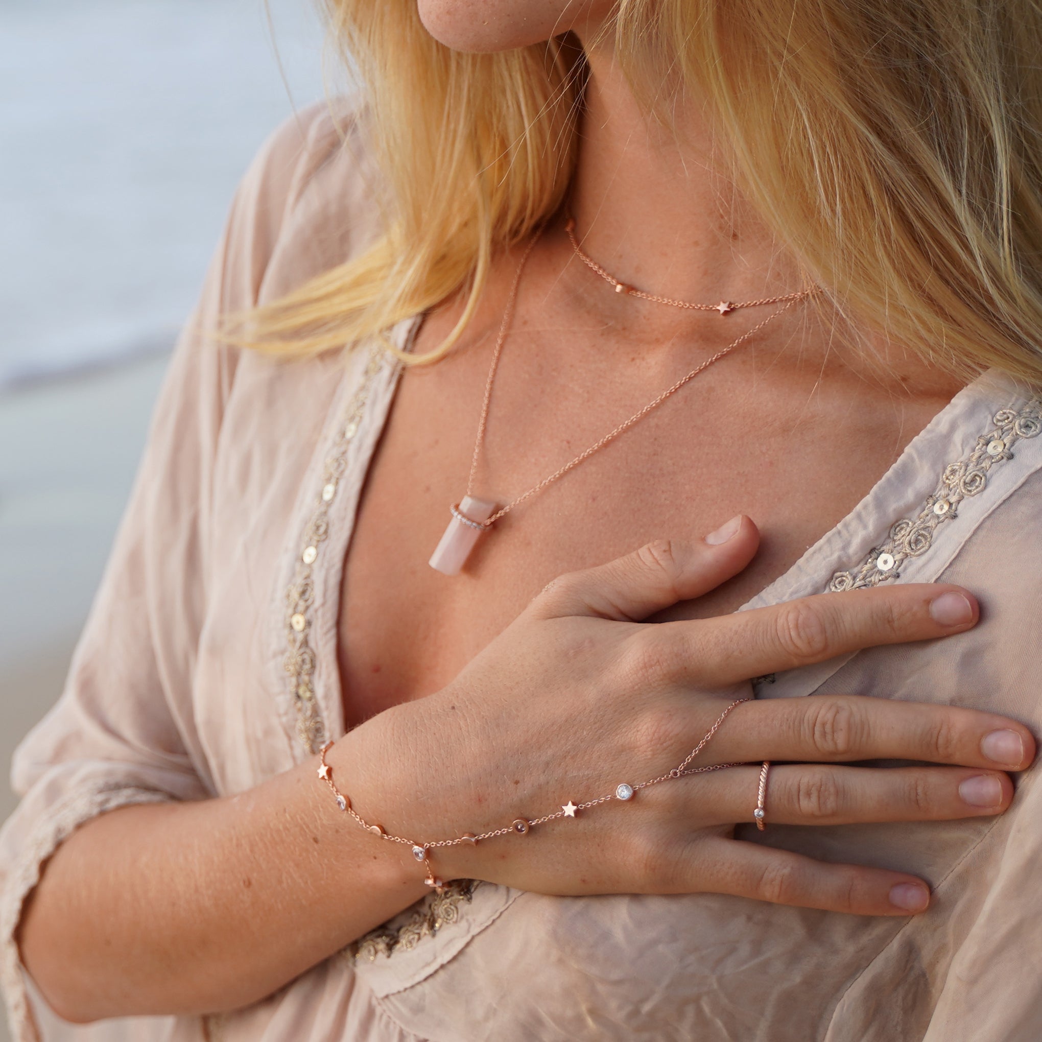 Inspired by the beauty and mystery of the cosmos and its connection to the earth, the Gaia Ring is made in 18ct Rose gold vermeil and features a pretty twisted motif with natural bezel set White Zircon in the centre. It is perfect for stacking with the other colours.