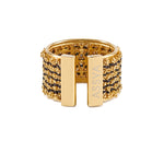 The unique Ibiza Ring features our classic tight weave finished with gold bars in an easy to wear open design. Intricately weaved with gold plated silver chain and black silk thread, it gives off a beautiful sparkle when catching the light.