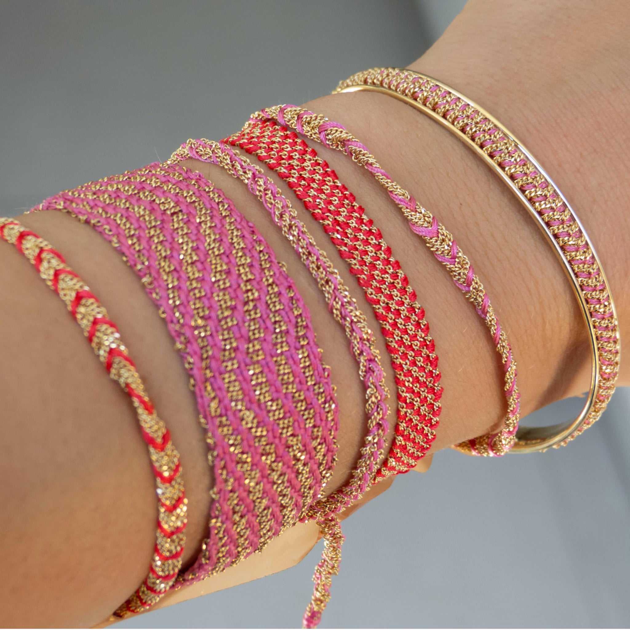 This colourful and elegant collection, inspired by the 1920s, is created using an old Italian weaving technique. Featuring hand-braided Italian silk woven with 18ct gold vermeil or sterling silver, each piece in the Silk Weaved Collection blends vibrant colours with timeless craftsmanship. From signature wrap braceletsand woven rings to bold cuff styles, these pieces bring a modern twist to vintage-inspired designs, perfect for layering, gifting, or wearing on their own.